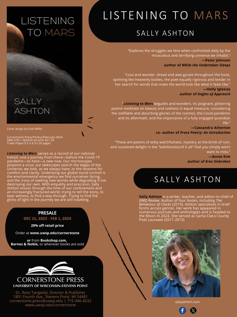 “Zero Gravity” and “Coda,” forthcoming from my new book, Listening to Mars, Cornerstone Press, February 2024.